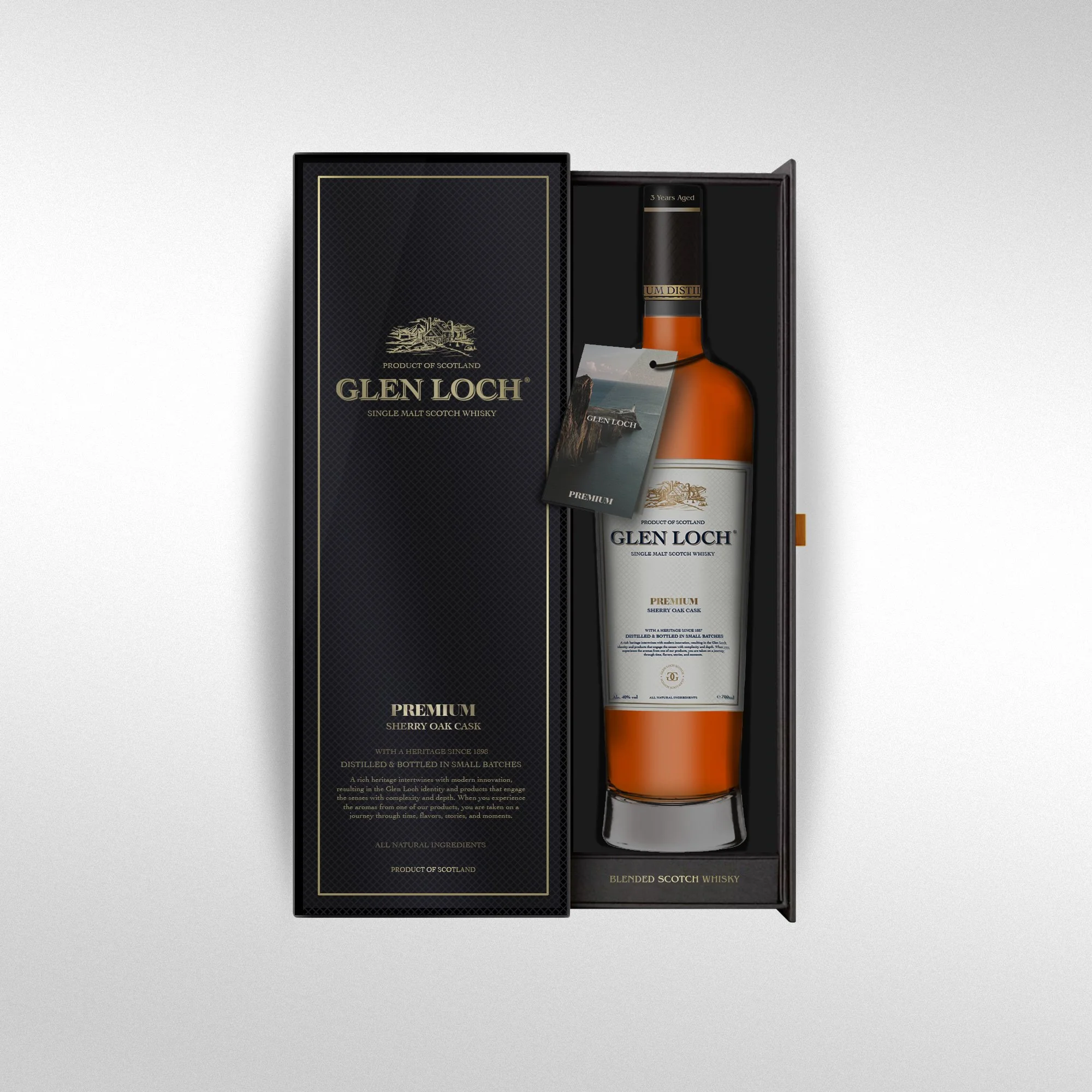 The Glen Loch exclusive box is crafted with elegance, reflecting the whisky's premium heritage. Every detail, from the embossed logo to refined textures, showcases meticulous craftsmanship. Designed to protect and present, it elevates the experience of owning a fine single malt and the smallest details ensure every moment feels extraordinary.